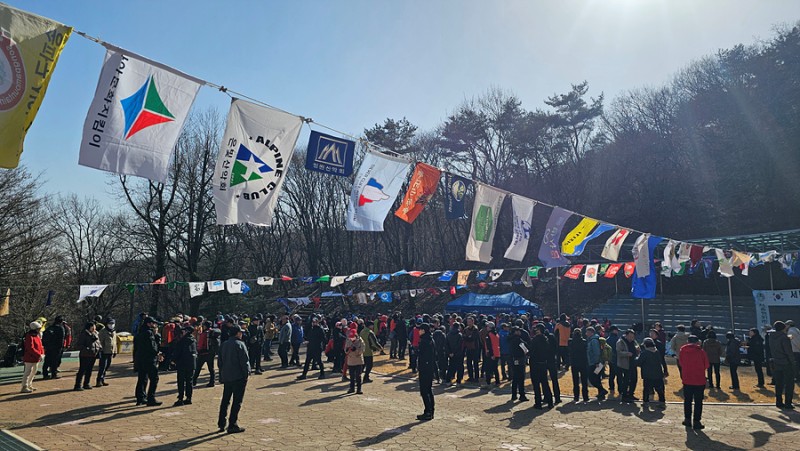 나부대는 단위산악회의 깃발과 우리들의 염원만큼