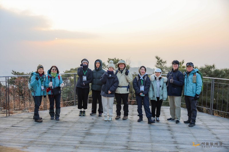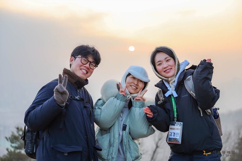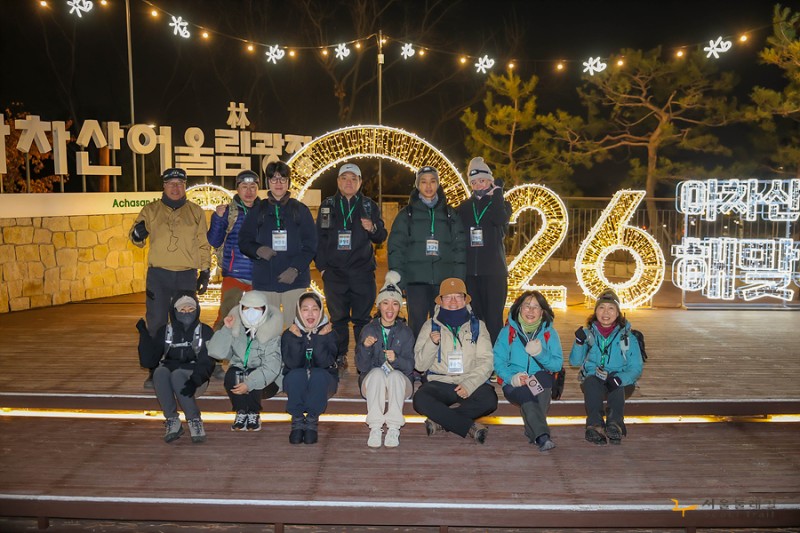 [260117] 서울둘레길 갓생 아차산 일출산행 작성자 정보 관리자 작성 523 조회 작성일 2026.02.24 15:10 컨텐츠 정보 본문 젊은이들과 함께 새벽산행을 해 봅니다^^아직 사위는 어두워 조용한데사박사박 우리의 발자국 소리만이 고요의 정적을 가릅니다구름띠가 넓어 일출을 포기하고 내려가는 순간 어느새 빼꼼 고개를 내미는 햇님 덕분에소란한 아침 맞이를 했습니다오늘부터 우리 즐거울 결심~행복할 결심건강할 결심 1일 입니다 ^^ 관련자료 링크 https://gil.seoul.go.kr/bbsctt/view.do?sc_bbscttSn=2601180002&key=2405200006&pageIndex=1&sc=&sw= 458 회 연결 이전 3월1일 가맹단체 해피그린 패밀리 베이비하이킹 일반등산교육 작성일 2026.03.02 다음 [2026.01.14.]2026년 신년하례회 작성일 2026.01.16 댓글 0개 등록된 댓글이 없습니다. 로그인한 회원만 댓글 등록이 가능합니다. 목록